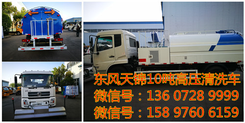 東風(fēng)天錦10噸高壓清洗車上裝配置: 高壓清洗配置:匹配江鈴型號JX493(57KW)78馬力副發(fā)動機(jī),意大利HPP大流量進(jìn)口高壓泵,前置清洗架(21個進(jìn)口噴咀),駕駛室電控操作,清洗架可上下左右30°擺動,臺灣合資液壓系統(tǒng),高低壓灑水功能,其它標(biāo)配。